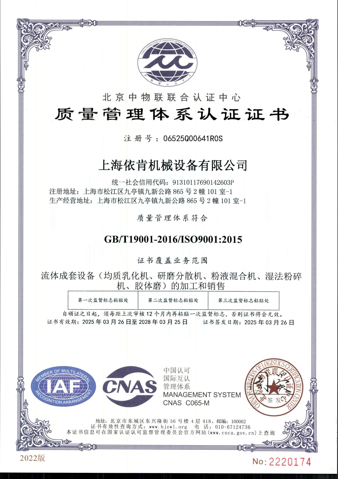 亲爱的朋友们,近日上海BC贷官方网站机械设备有限公司迎来了一个重要的里程碑 —— 公司获得了北京中物联联合认证中心颁发的质量管理体系认证证书(注册号:06525Q000641ROS),这标志着我们在质量管理上符合 GB/T19001 - 2016/ISO 9001:2015 标准!